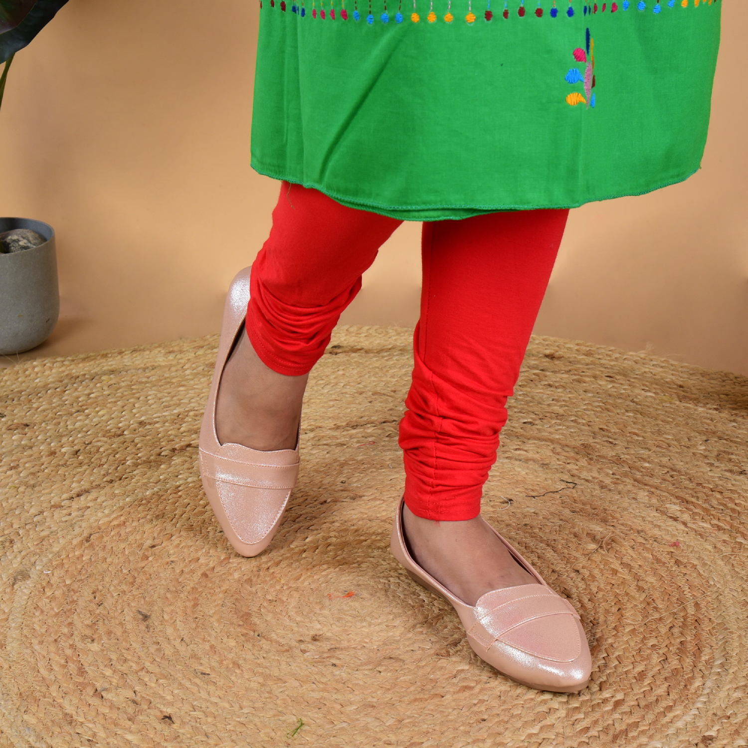 Elite Women’s Ribbed Pink Pointed-Toe Flats – Cushioned Comfort & Slip-Resistant Sole L163442E
