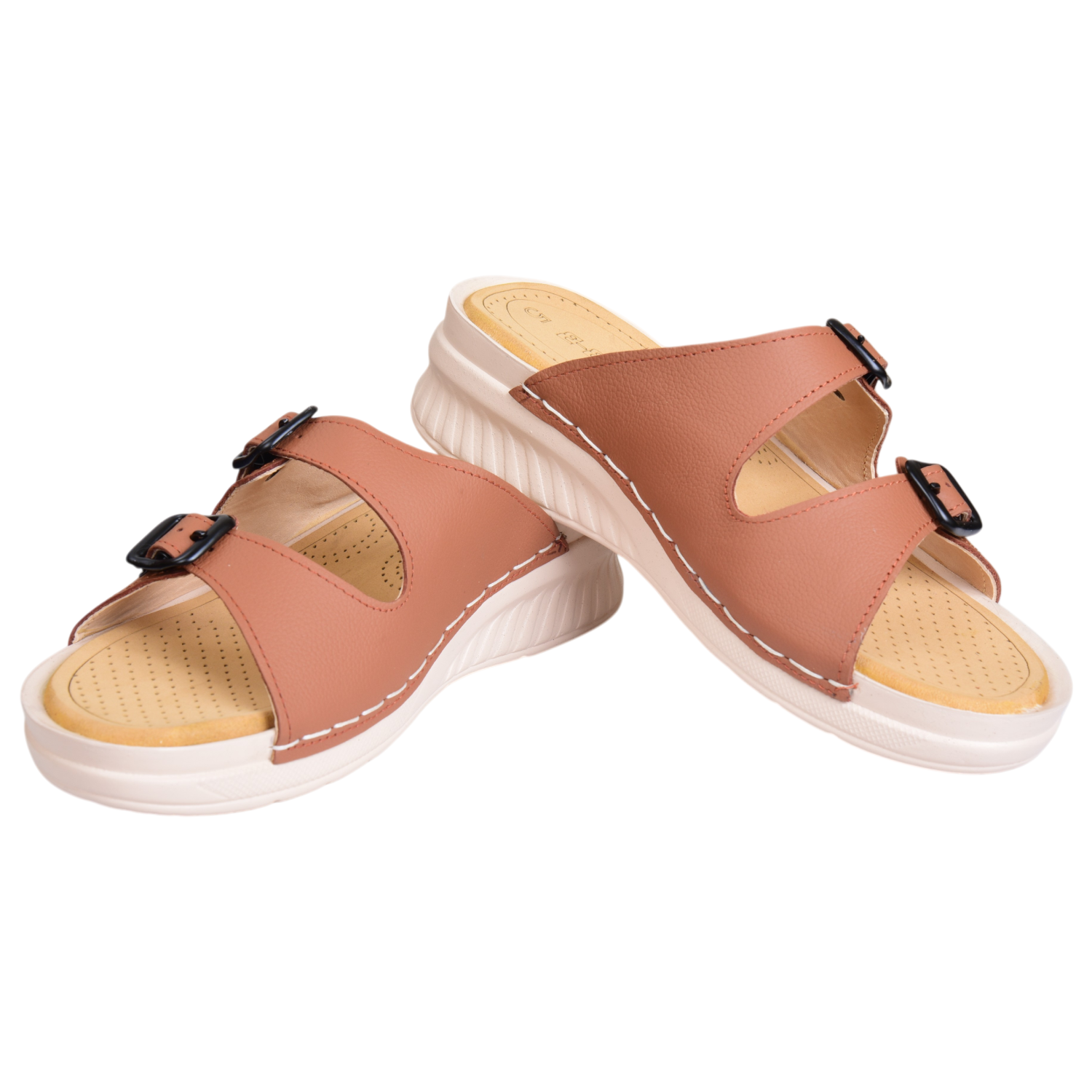 Elite Women’s Brown Foam Sandals with PVC Sole – Square-Toe Dual-Strap Slip-On Flats – L179174E