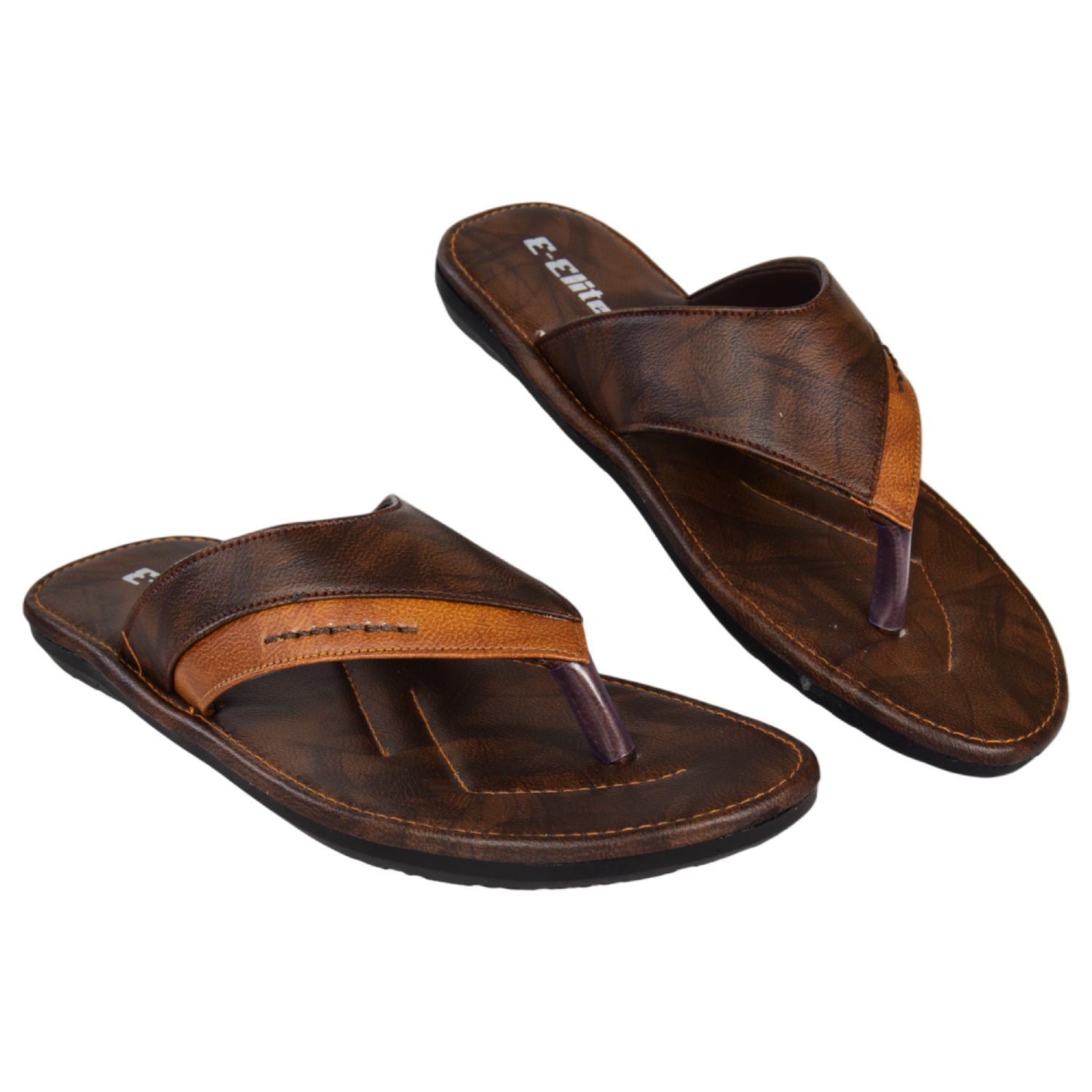 Elite Men’s Brown Leather-Texture Toe-Post Sandals G239219E