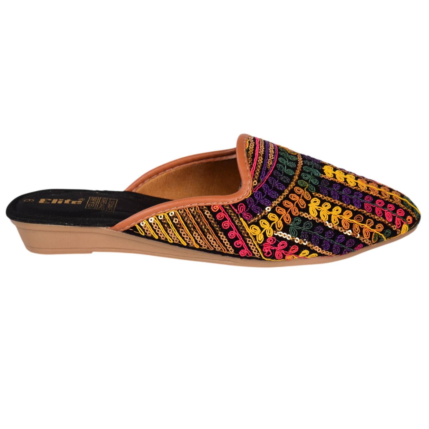 Elite Women’s Embroidered Jutti Sandals – Handcrafted Multicolor Artistry L163444E