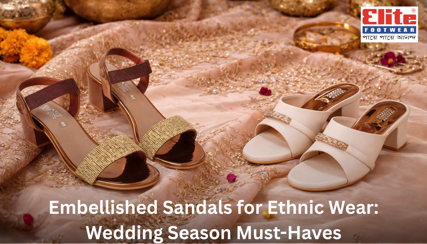 Exploring embroidered sandals ethnic options? Start with classic threadwork for sarees, then level up to luxury wedding sandals India with Swarovski accents. Elitefootwear.in’s wedding flats showcase this range, from ₹599 thong styles to designer buys.