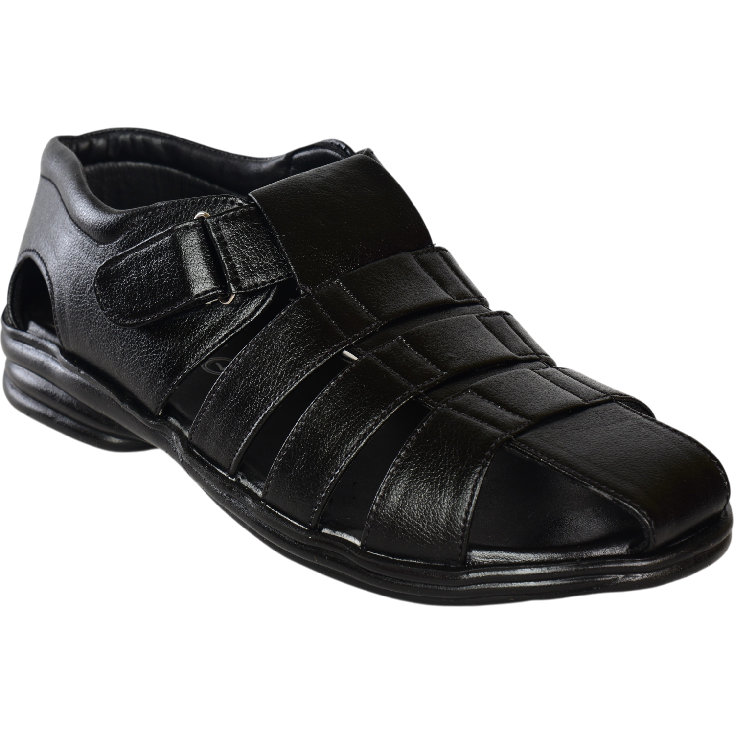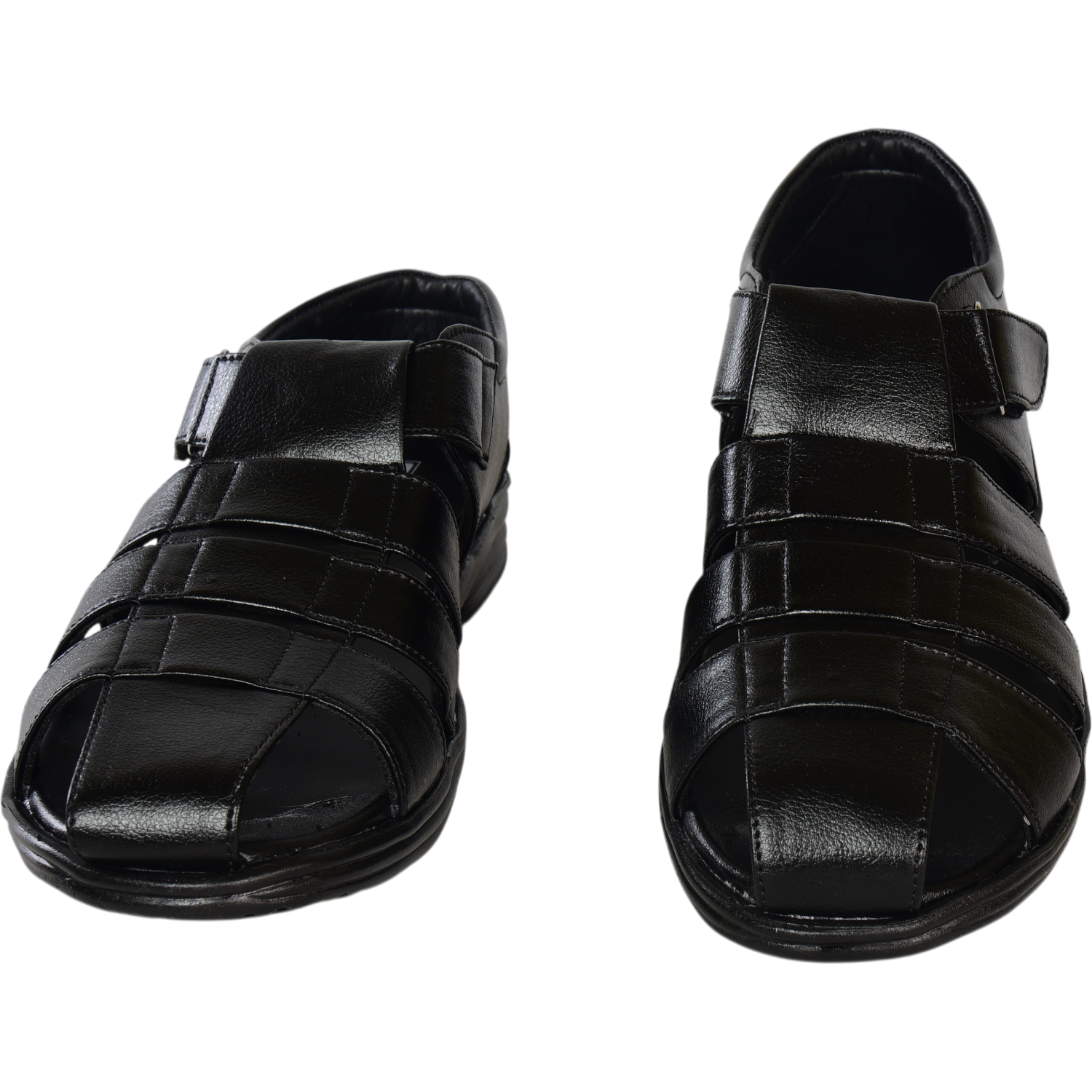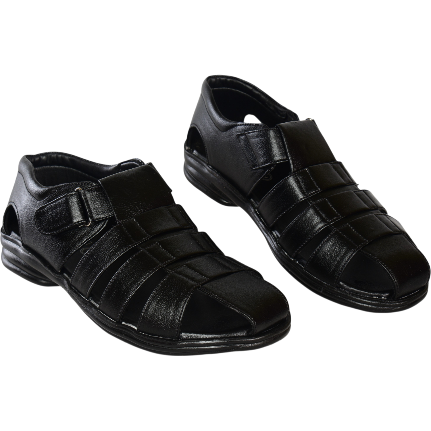 These black men’s sandals blend rugged durability with refined style, featuring a closed-toe silhouette crafted from smooth, leather-like material that resists scuffs and adapts to everyday wear. Multiple anatomically placed straps cradle the foot, while an adjustable hook-and-loop closure at the ankle ensures a personalized, secure fit. Beneath, a lightly cushioned footbed cushions each step, and a textured rubber outsole delivers reliable traction on both city streets and weekend trails. Subtle stitching details and a contoured midsole lend a polished touch, making these sandals as appropriate for laid-back barbecues as they are for casual nights out.