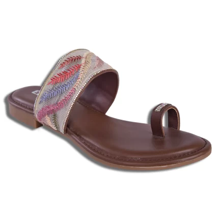 Elite Footwear Women’s Boho Embroidered Toe Ring Sandals | Leaf Pattern Design | Stylish Ethnic Flats | L3854265