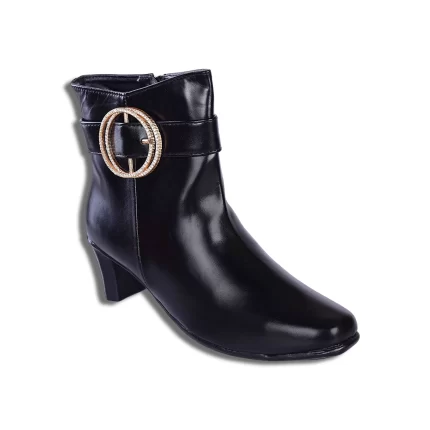 Elite Footwear Women’s Black Ankle Boots | Stylish Buckle Detail | Chic Faux Leather Design | L325822