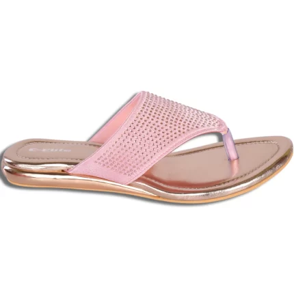 Elite Footwear Women’s Pink Slip-On Toe Ring Flats | Embellished Detailing with Shimmer Finish | Synthetic Upper | L129227