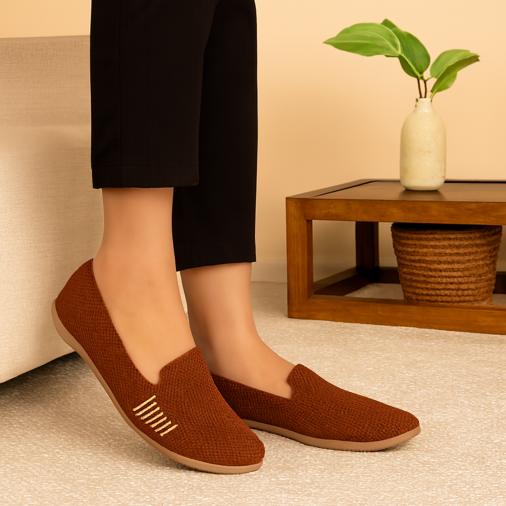 Elite Women’s Brown Textured Knit Slip-On Casual Shoes – Lightweight Comfort & Easy Wear L163443E