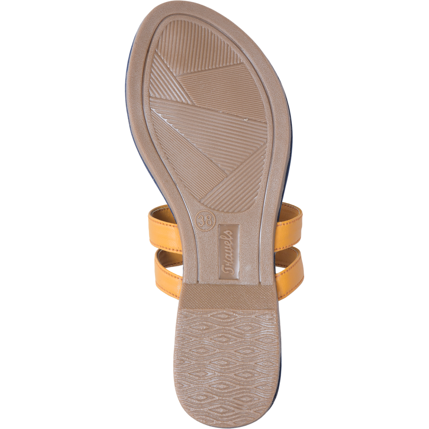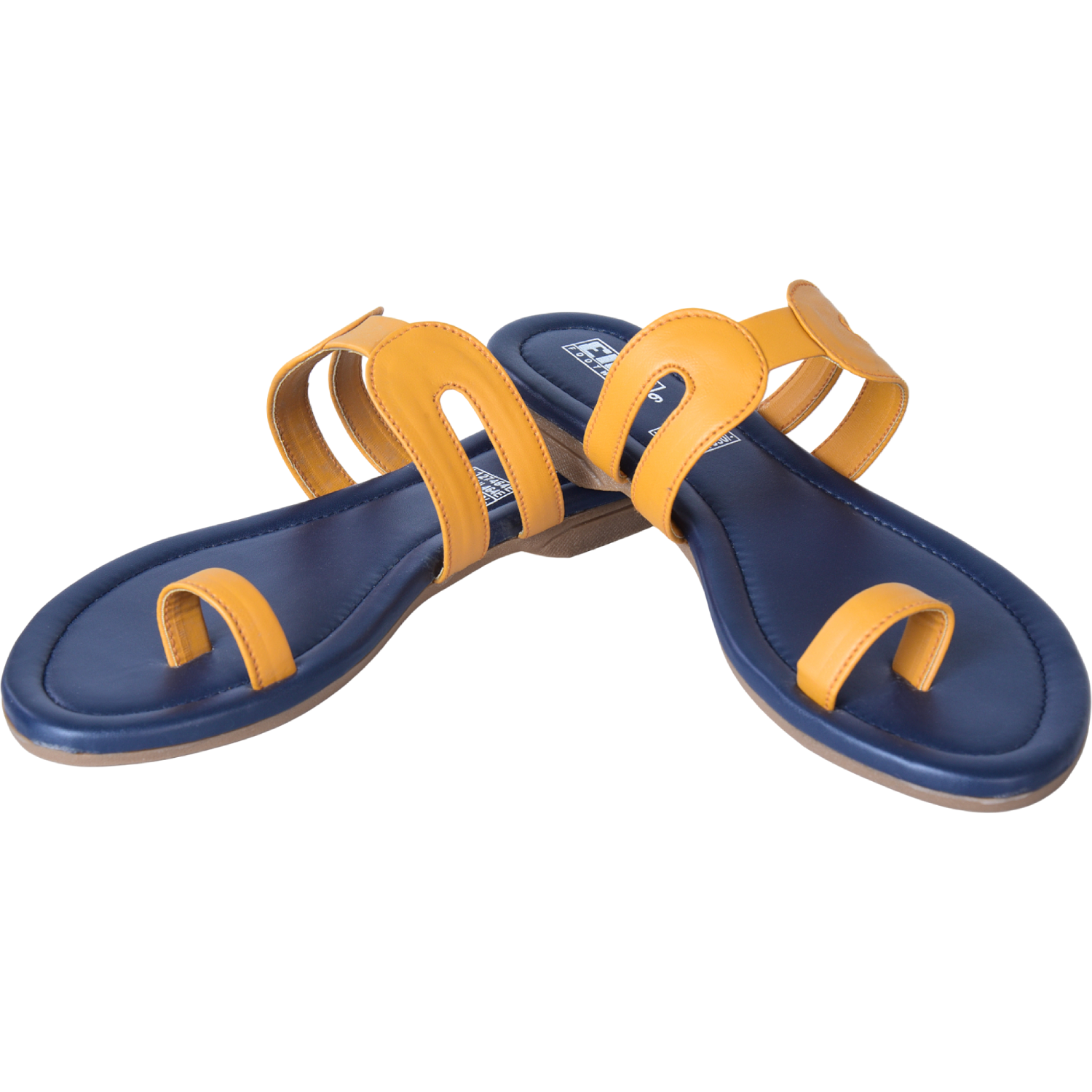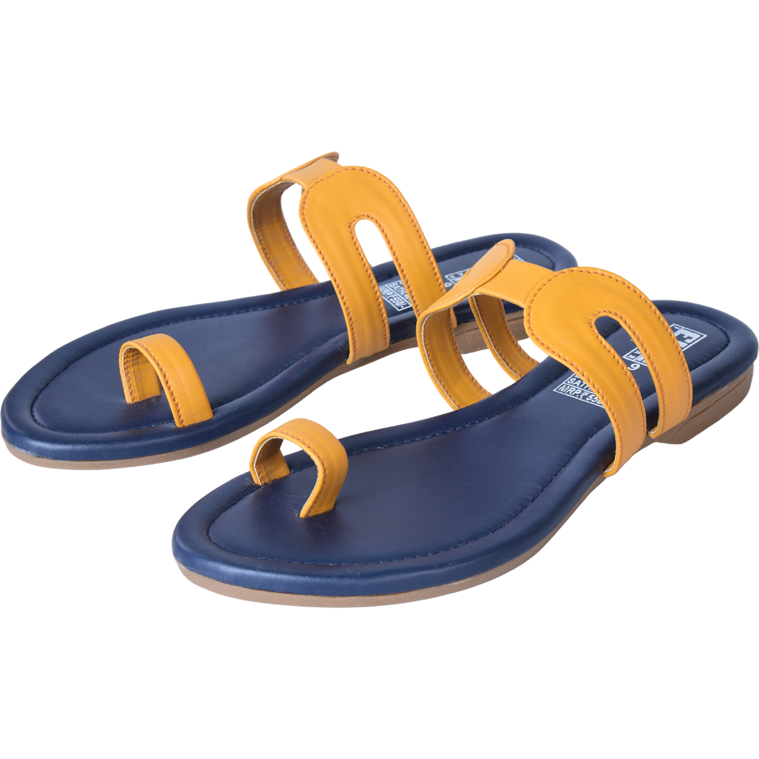 • Color combination: Mustard yellow straps; navy footbed and sole