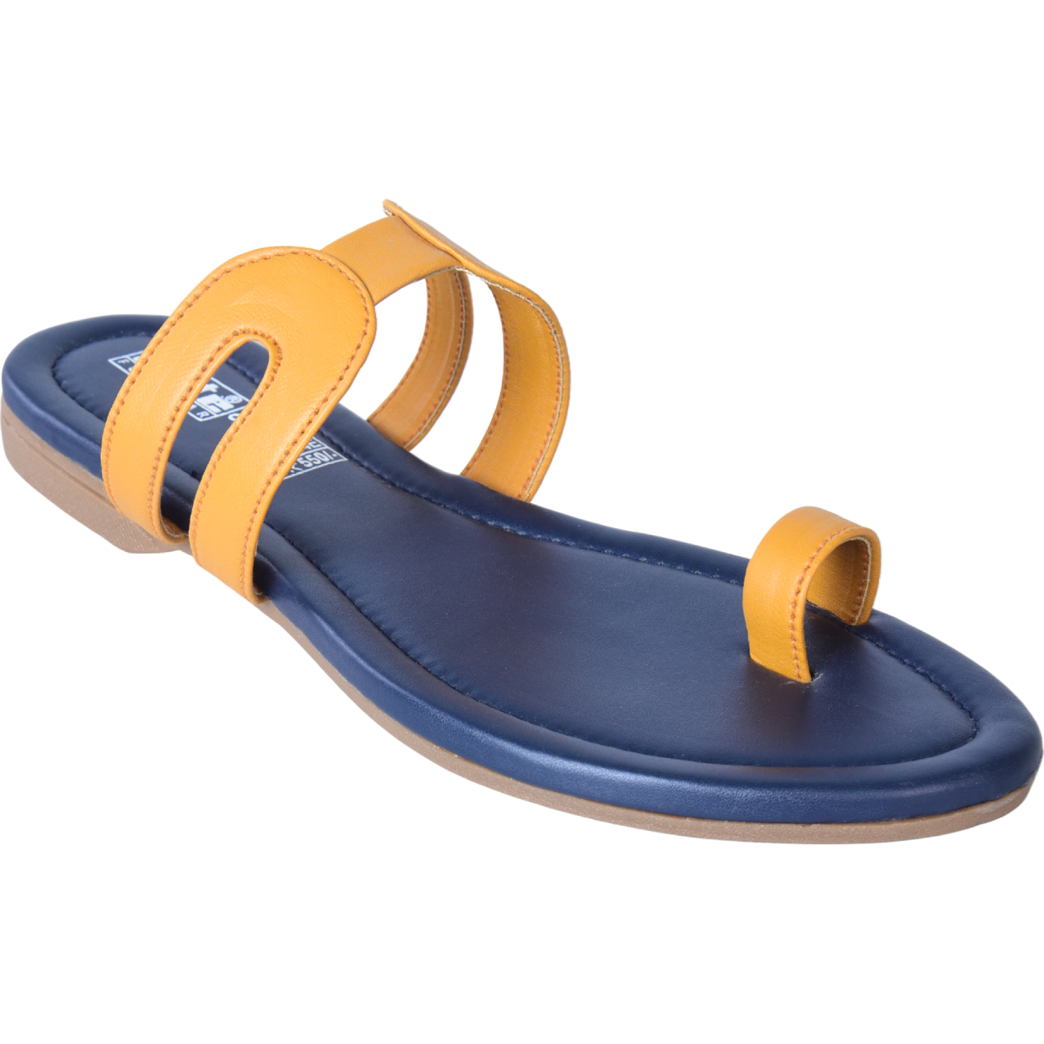 Elite Women Yellow Flat Sandal — Navy Footbed with Mustard Yellow Straps L127464E