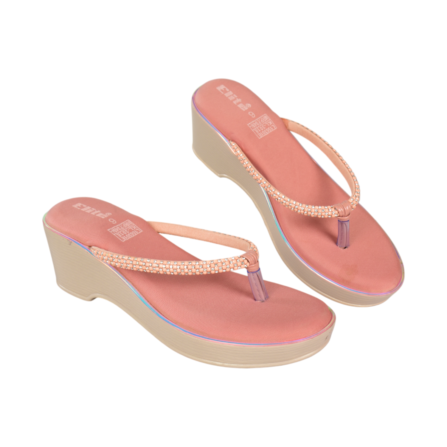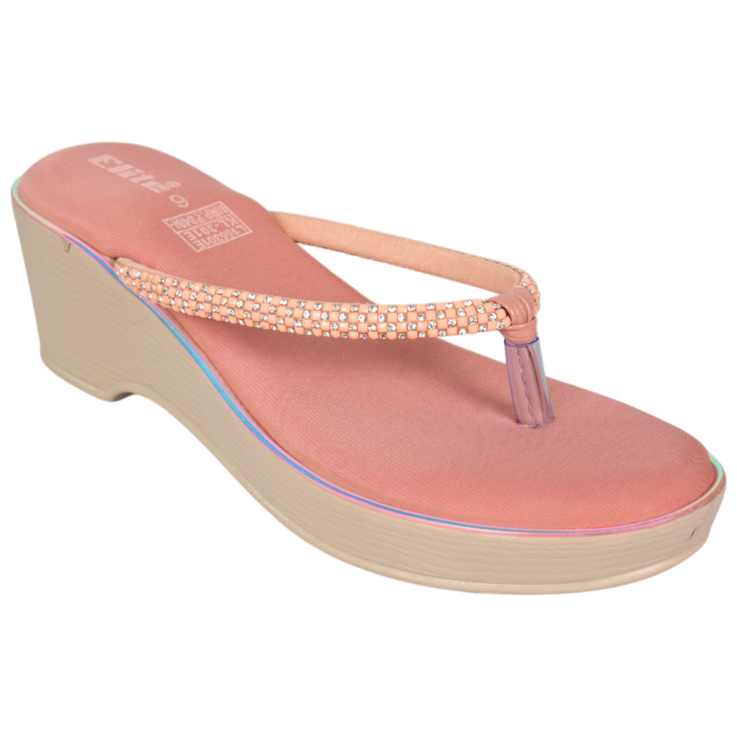 Elite Footwear Women’s Peach Wedge Flip-Flop Sandals | Cut-Out Strap Design | Cushioned Sole | L179141