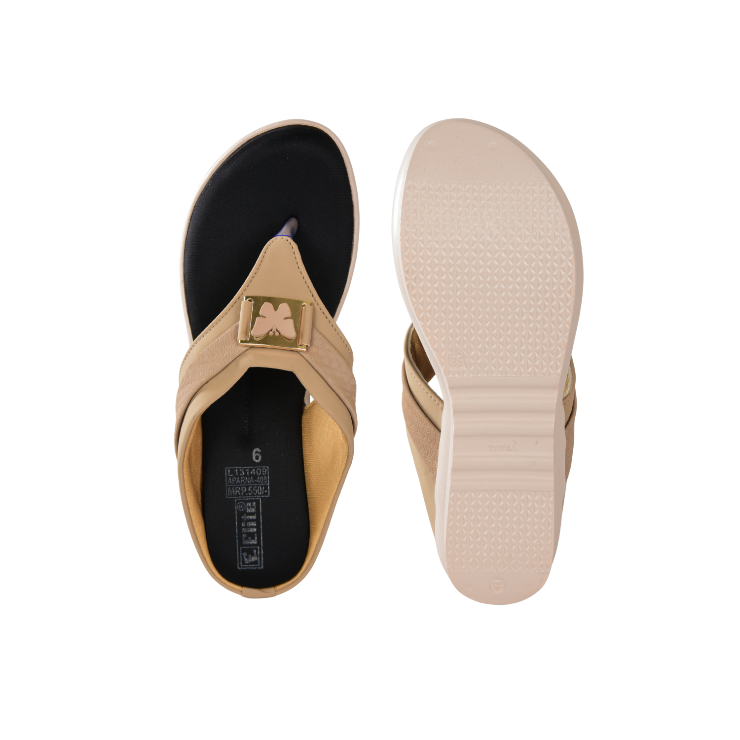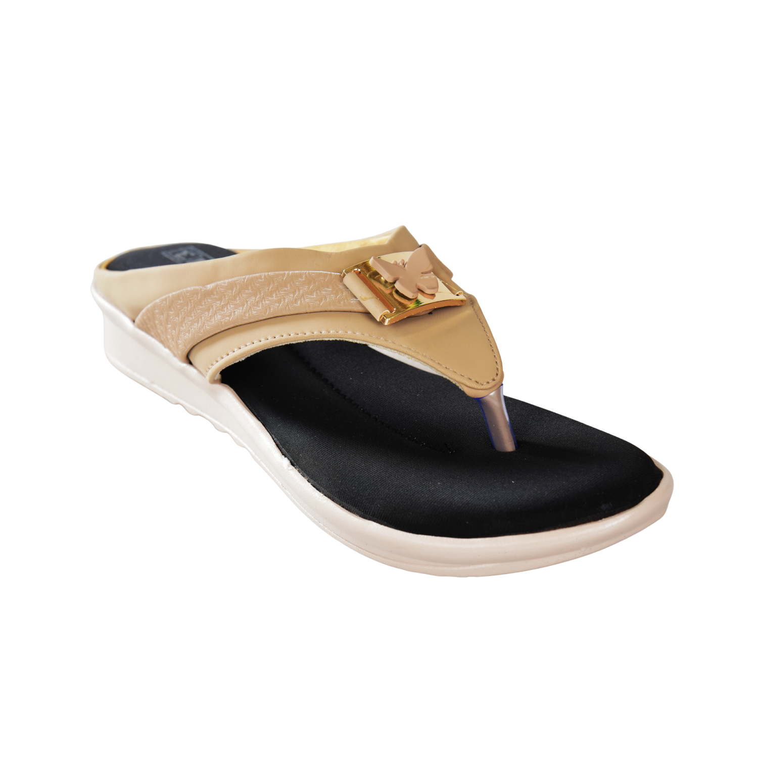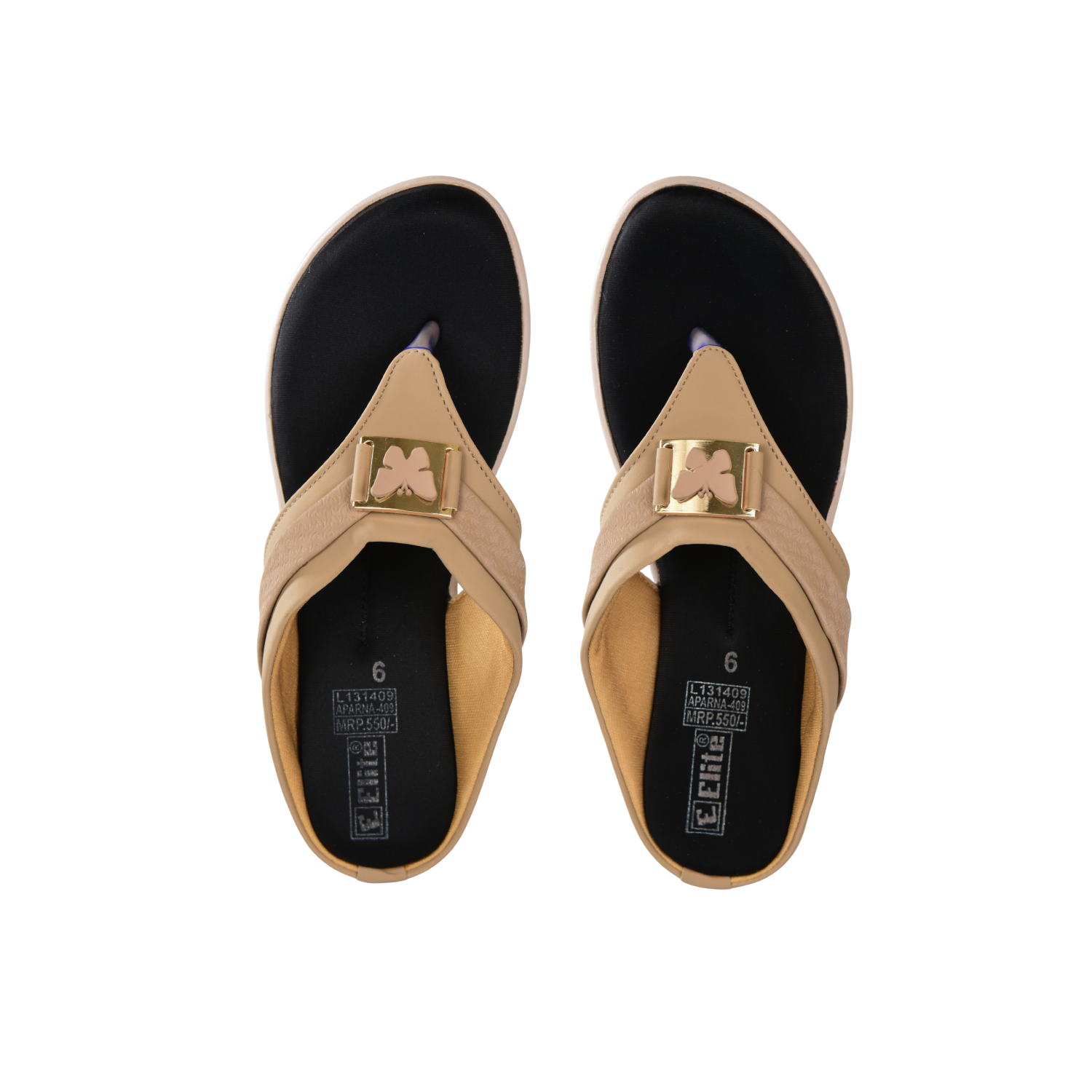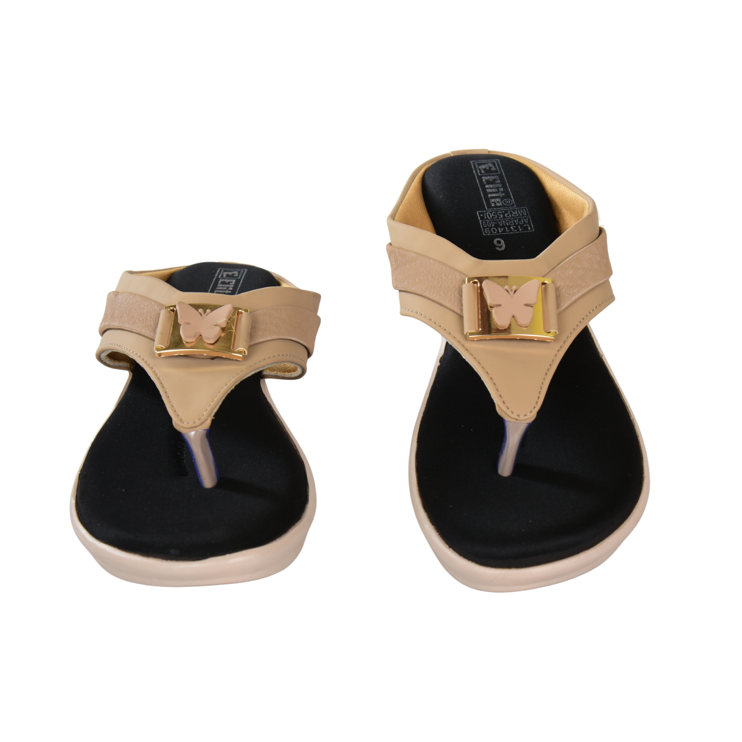 Elevate your everyday style with the Elite Women’s Beige Sandal, a perfect mix of elegance and comfort. Featuring a chic thong design with a beautifully crafted gold butterfly emblem, this sandal adds a graceful touch to any outfit. The contoured black footbed ensures lasting comfort, while the textured beige upper brings a refined, modern appeal. Lightweight yet durable, it’s designed for women who love effortless fashion without compromising on ease. Whether for casual outings, festive gatherings, or daily wear, this sandal pairs seamlessly with both ethnic and western looks, making it a versatile must-have in your wardrobe.