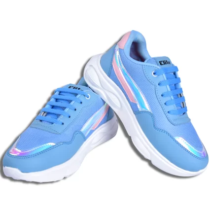 Elite Footwear Women’s Blue Casual Sneakers | Breathable Mesh with Holographic Detail | Lightweight Lace-Up Shoes | L306440