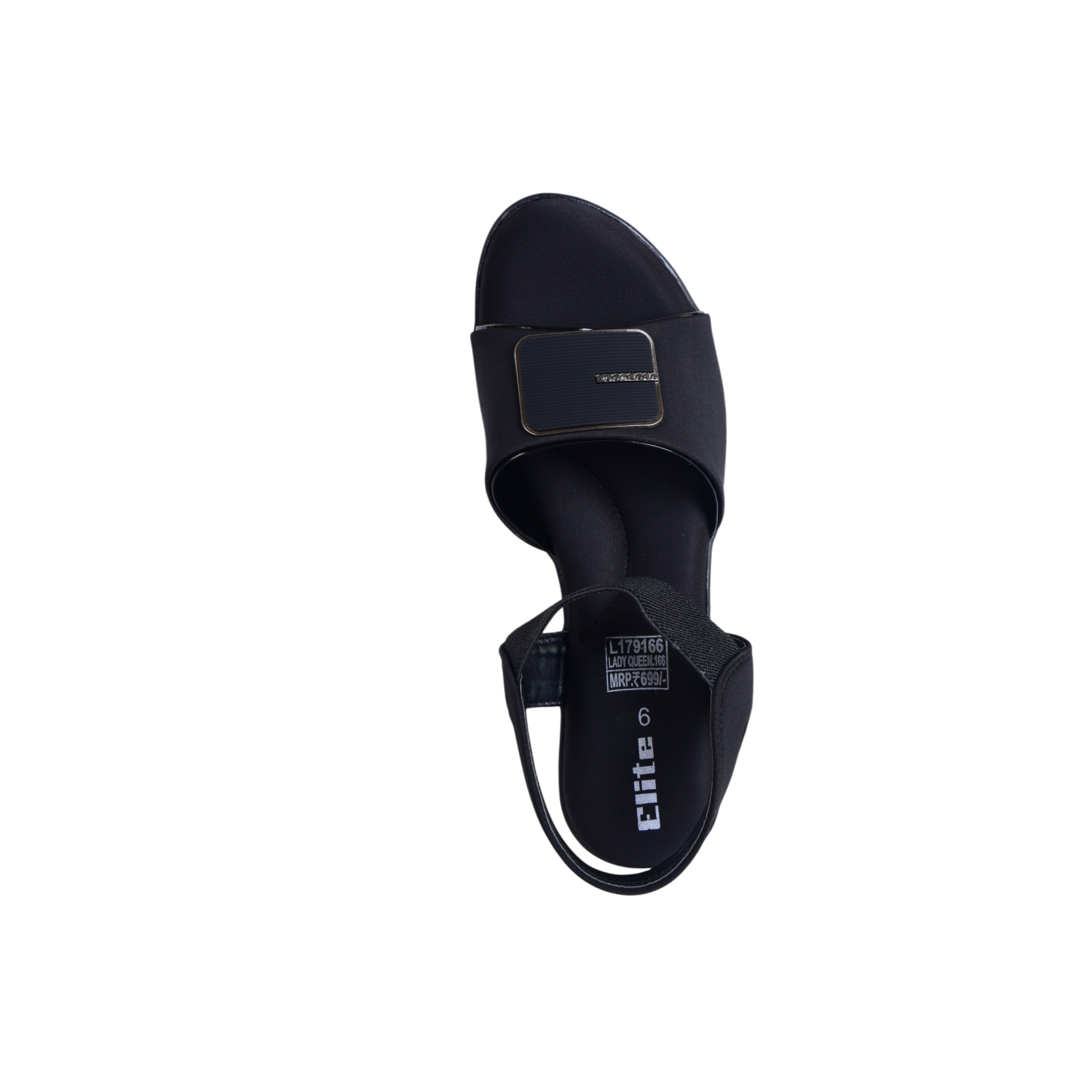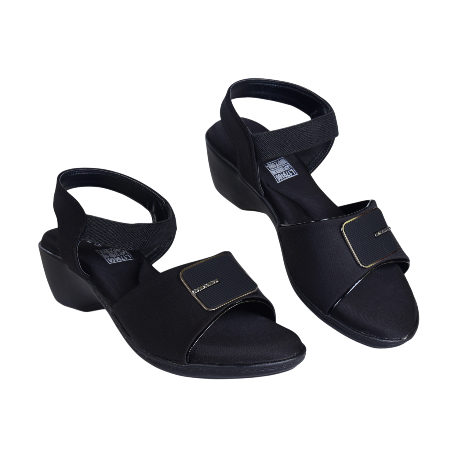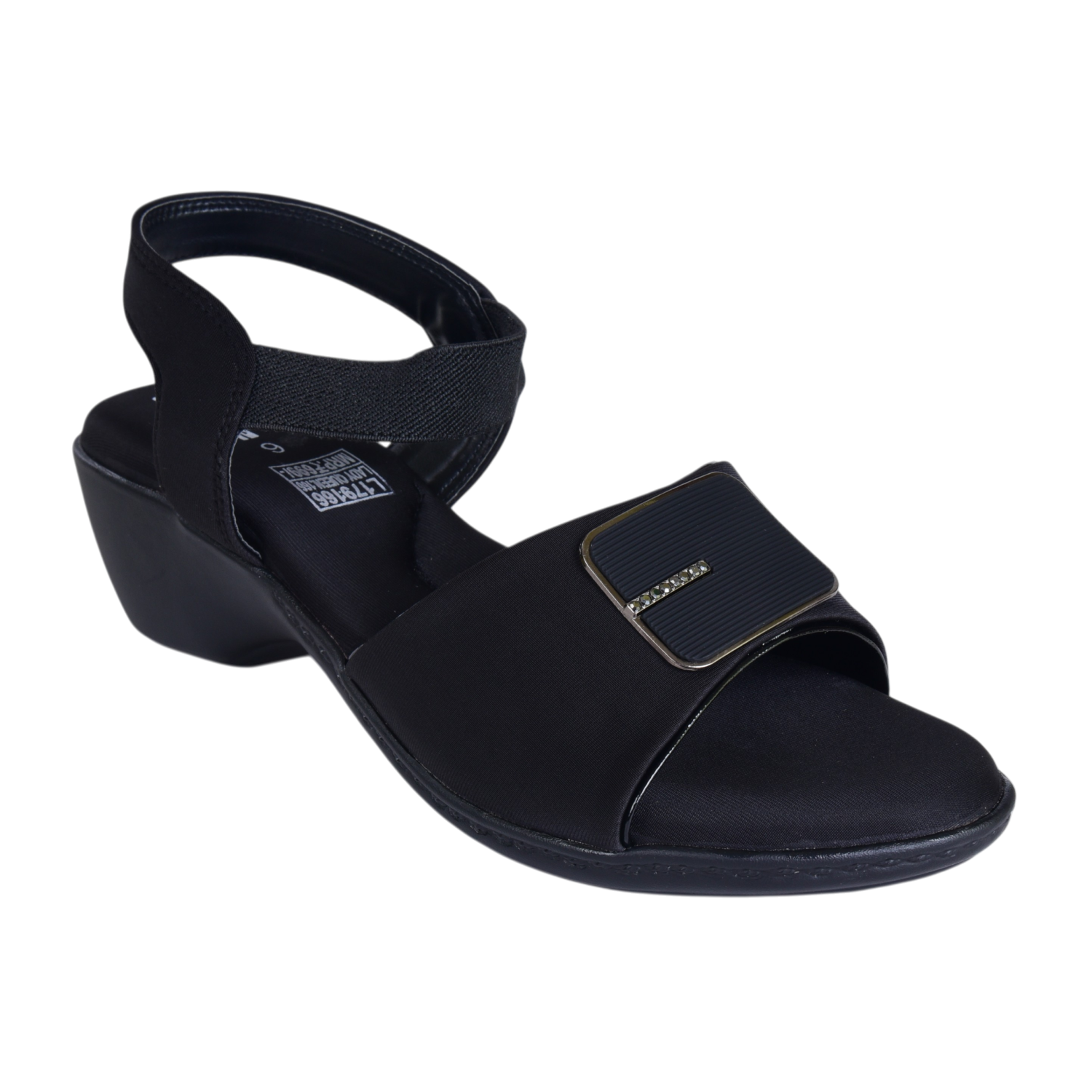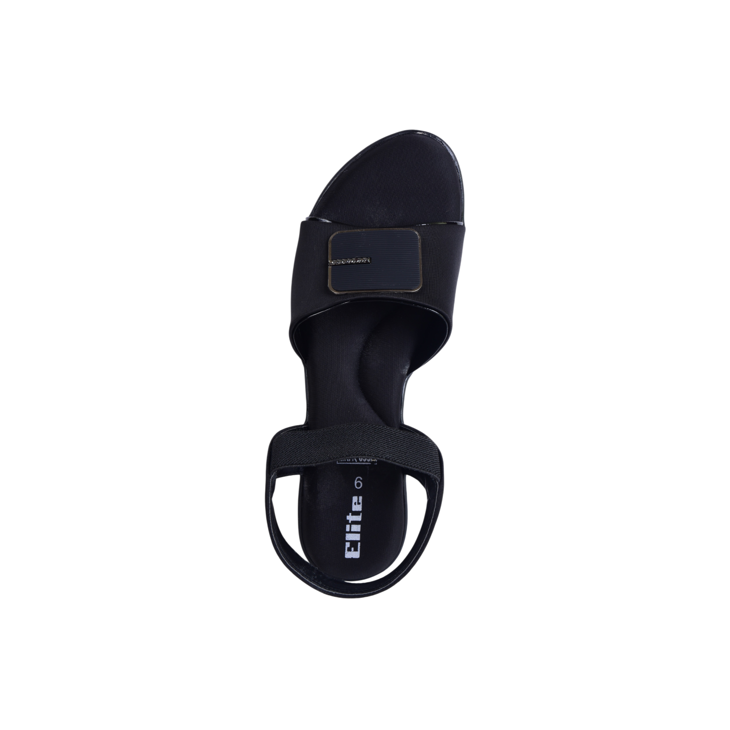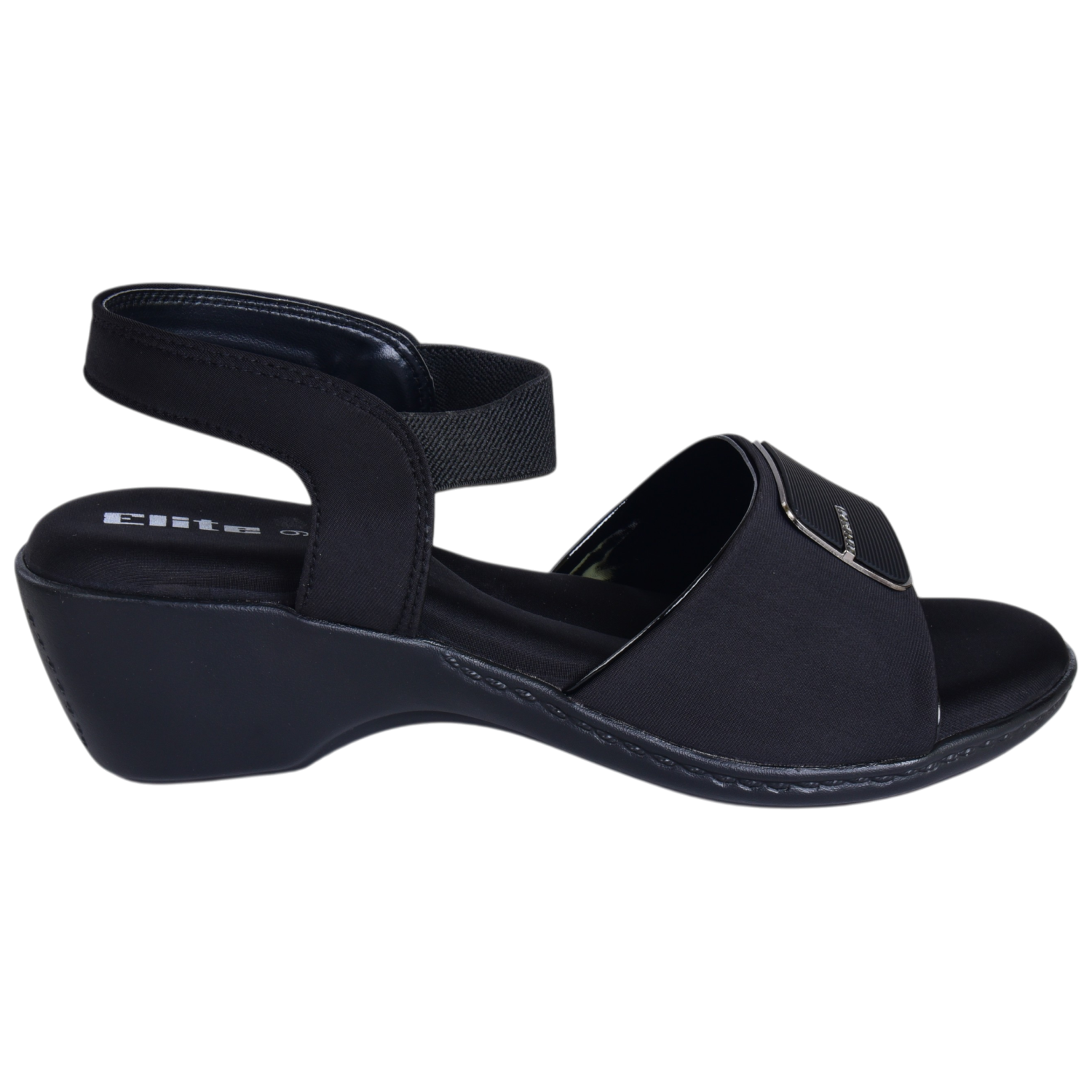 Elite Women’s Black Low‑Wedge Sandals – Stretch Straps, Branded Toe Detail, Everyday & Occasion Wear