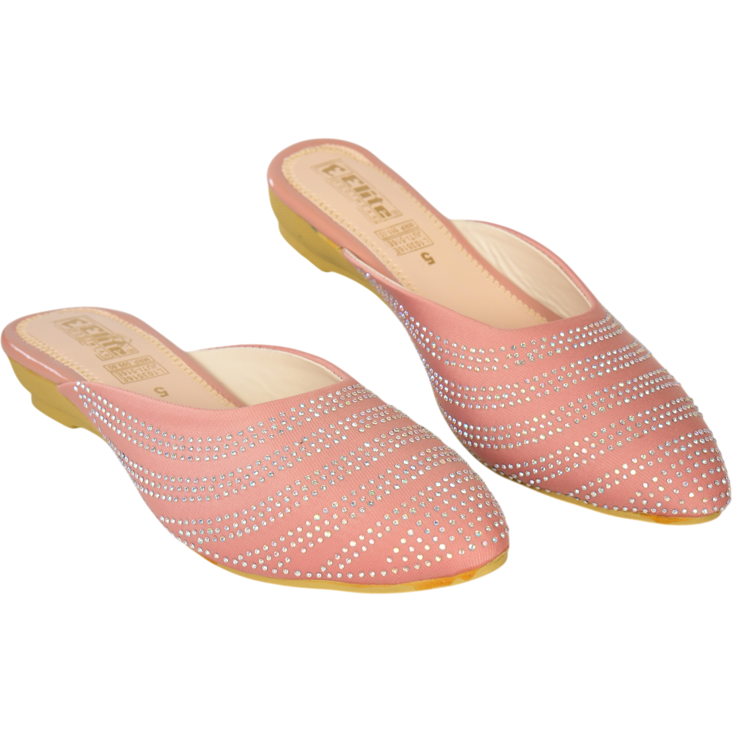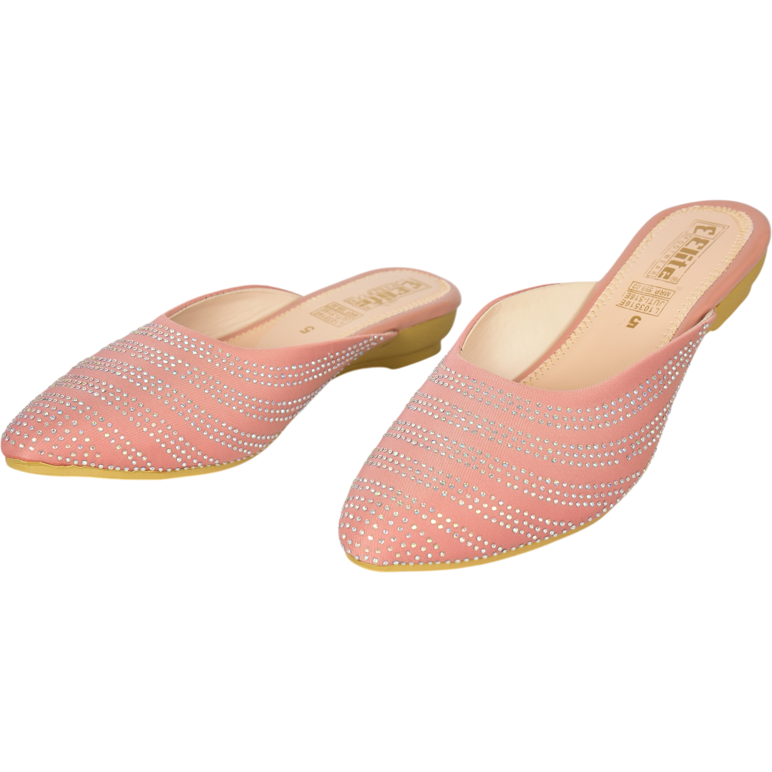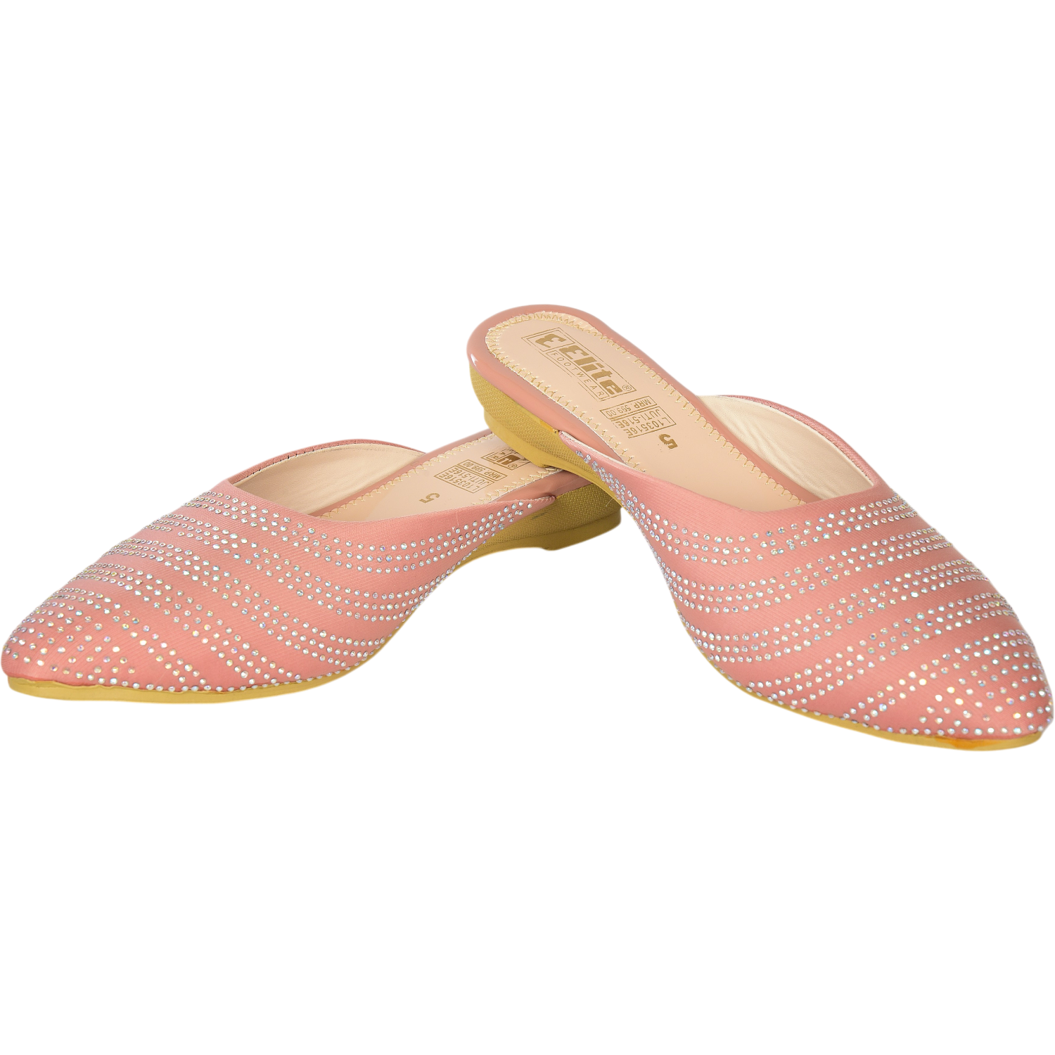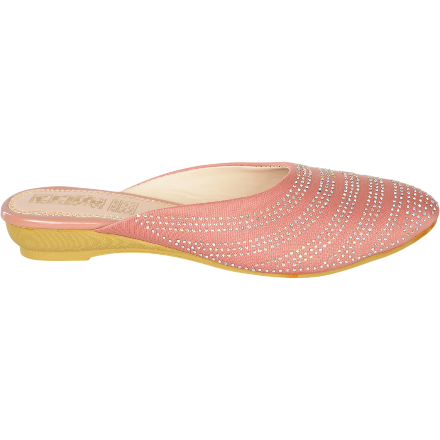 Elevate your ethnic and festive look with this stunning pair of peach slip-on sandals from Elite. Designed with a graceful closed-toe silhouette, these sandals are adorned with intricate sparkling stonework that adds a luxurious charm to your outfit. The soft peach hue offers a subtle yet elegant touch, making them perfect for special occasions, traditional gatherings, or festive events. Crafted for comfort and style, they promise to keep your feet looking and feeling fabulous all day long.