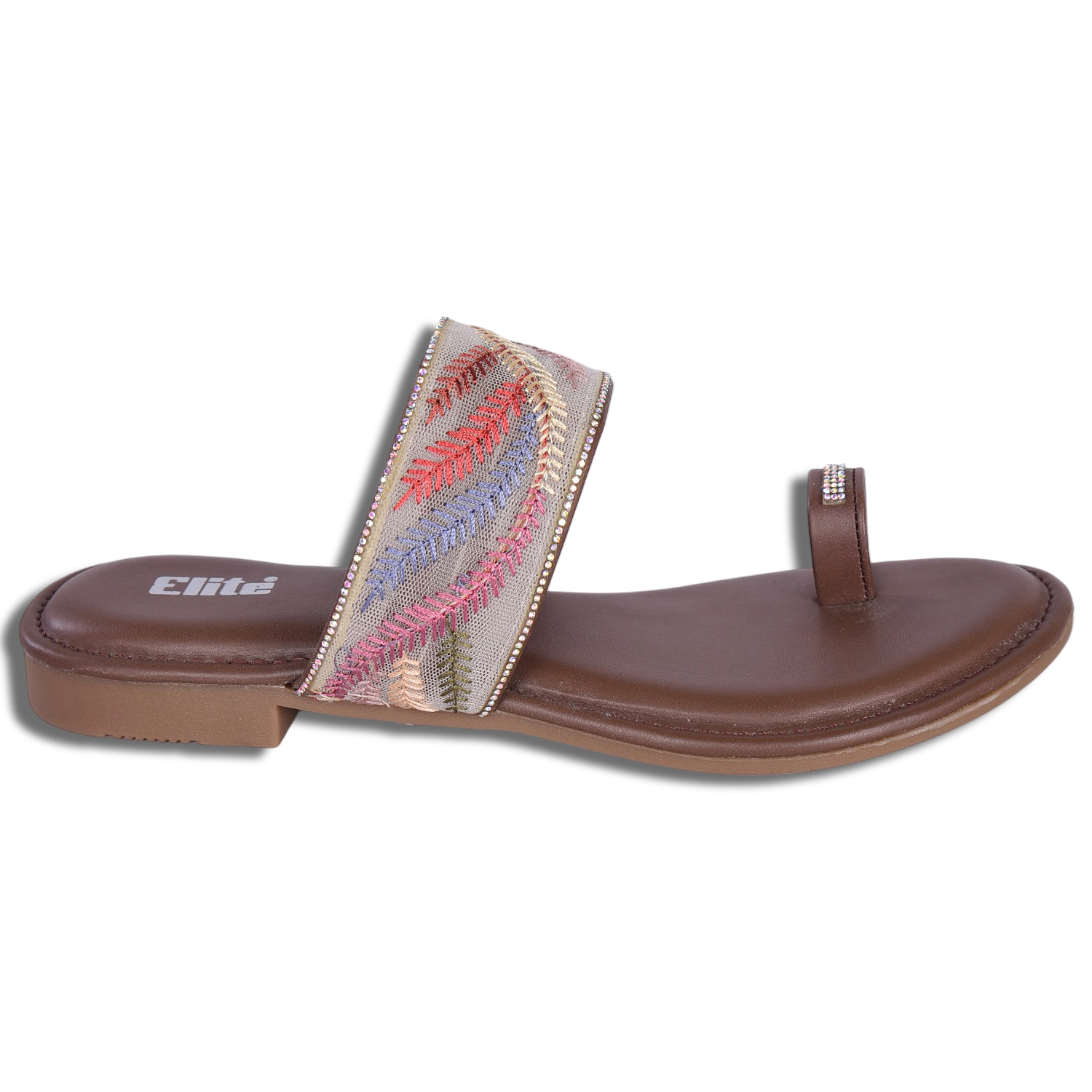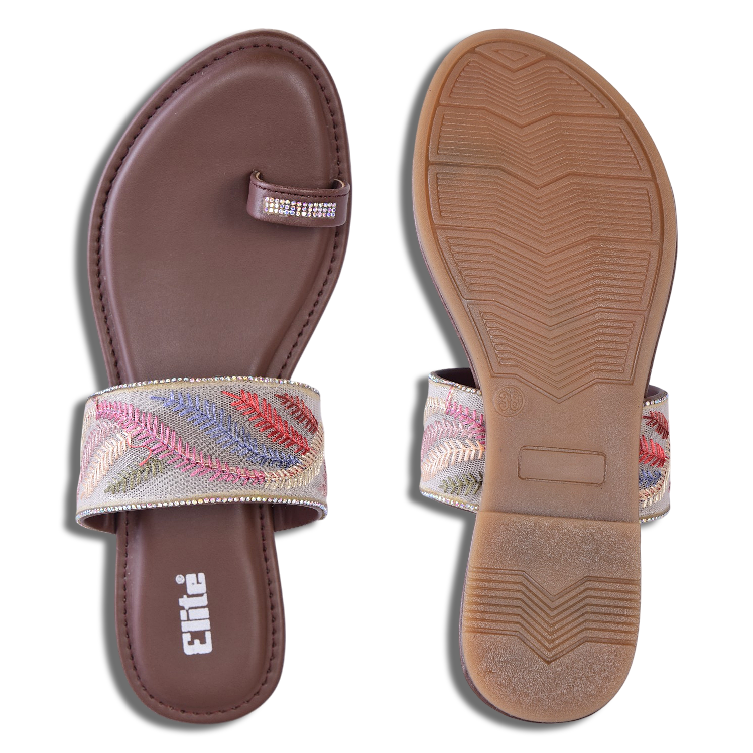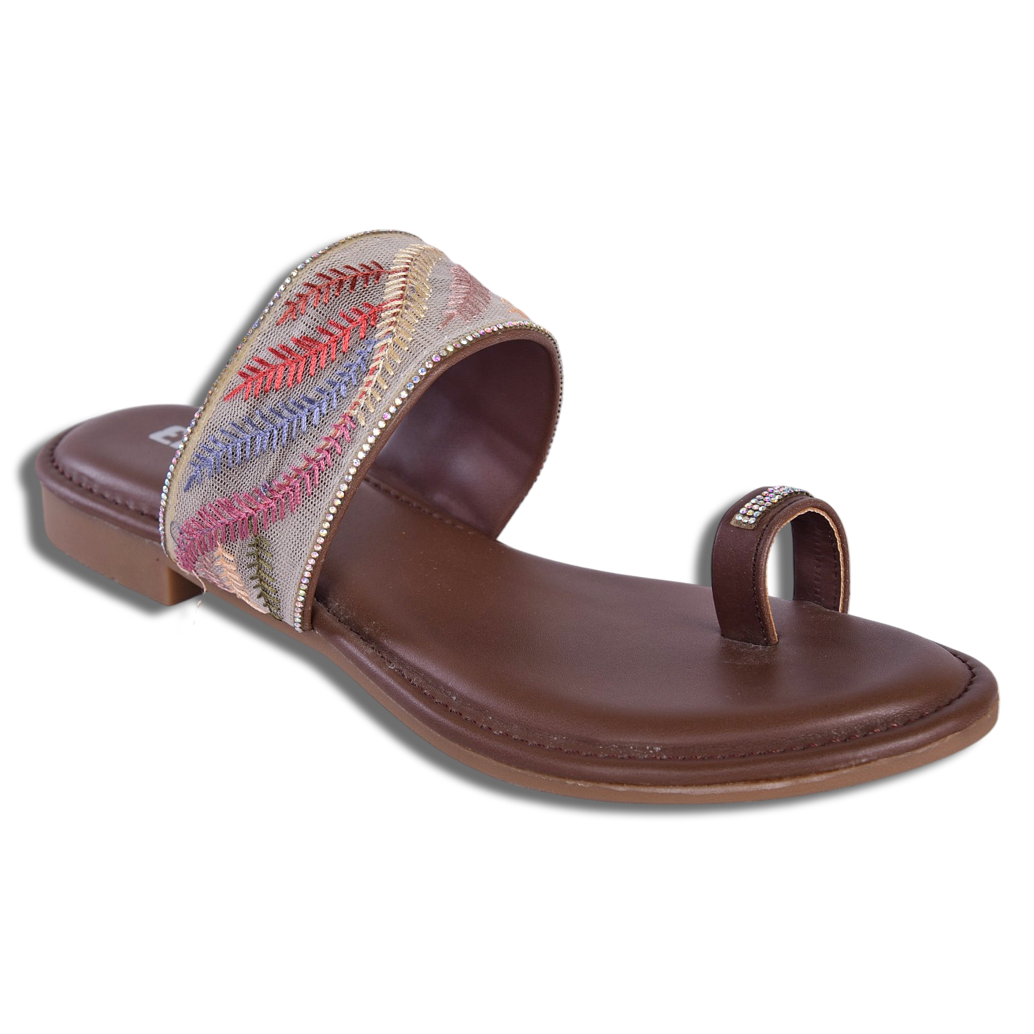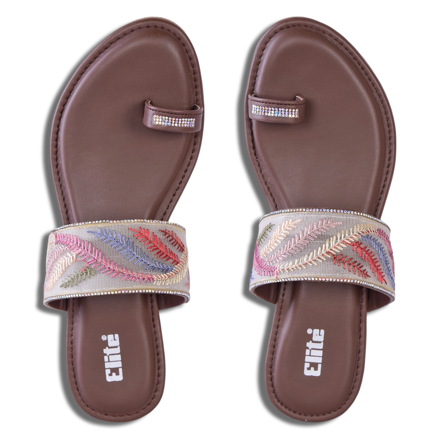 The rich brown base creates a grounded, versatile tone that pairs beautifully with both ethnic and modern outfits. With a broad upper strap and toe loop for added stability, and a soft cushioned footbed for all-day comfort, these sandals make no compromise between aesthetic and ease.